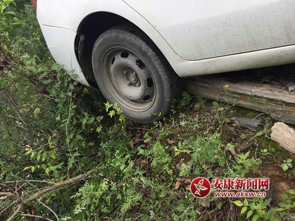 新手司机开车紧张致车掉下路沿 警民合力将车抬起