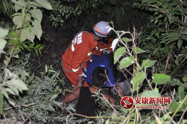 摩托车失控三人坠崖 旬阳消防紧急救援