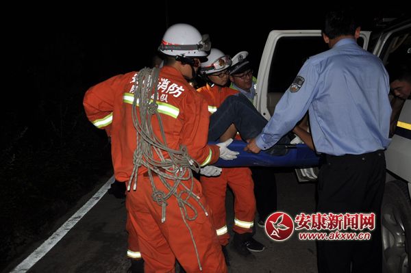 摩托车失控三人坠崖 旬阳消防紧急救援