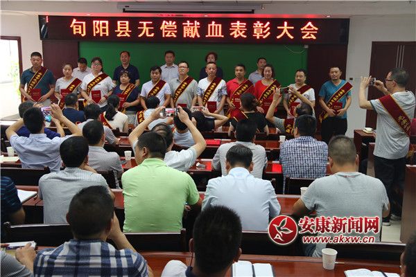 8月2日,旬阳县召开无偿献血首次表彰大会,对2014—2015年度无偿献血先进集体和先进个人进行表彰。受表彰的先进集体、先进个人代表和县镇卫生计生机构负责人共100余人参加表彰大会,市中心血站站长胡章学、县政府副县长王燊等领导出席会议。