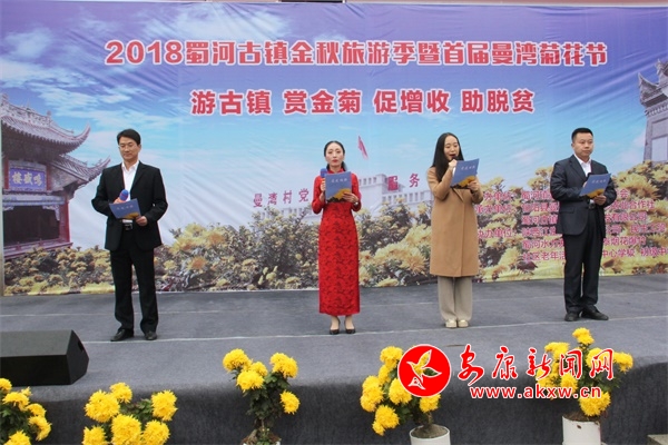 文艺演出,展示古镇人精神风貌。在喜庆的音乐声中,一首《好日子》拉开演出序幕。蜀河镇、县委统战部、曼湾村主要负责同志致辞感谢社会各界对曼湾村脱贫攻坚的大力支持。舞蹈《蜀绣》呈现出古镇特色文化创意,诗词朗诵《菊花颂歌》真情流露菊花的尊贵和高洁,非遗传承节目汉调二黄《落花园》再现汉水文化的厚重悠深,原创歌曲《古镇夜色》轻快表达“小汉口”的古韵和新气象,《中华武术》、《爵士舞》展示了老当益壮和青春风采,《旗袍走秀》在清幽恬静的音乐中展现了古镇妇女的精神风采。现场数千名群众欢聚一堂,欣赏着富有浓郁古镇特色的文艺节目,一阵阵掌声、笑声表达着新农村的幸福生活。