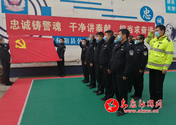 本网讯 (通讯员 龚泽政)“我宣誓:对党忠诚,服务人民,全力投入疫情防控战役,疫情不止,警察不退不退。”2020年的春节小长假,本是举国同庆,阖家团圆的时节,但是却被新型冠状病毒肺炎打乱了节奏。旬阳县公安局吕河中心支部全体党员及民警取消休假,全体投入到疫情防控阻击战中。