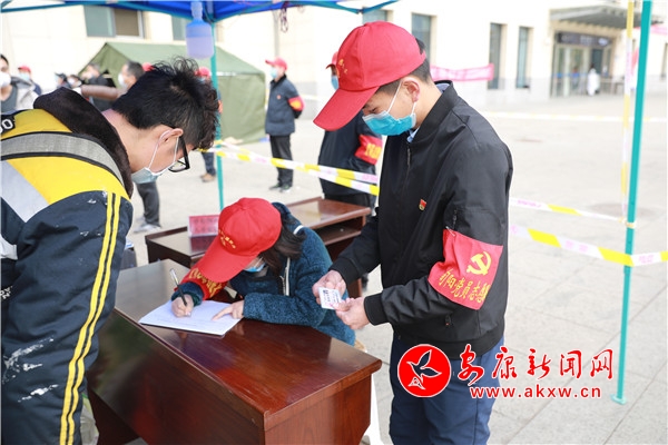 一会儿功夫,这支赴旬阳北站开展疫情防控工作的党员志愿者突击队就组建起来了。2月14日中午,他们佩戴着党徽、红袖章准时出发,按照统一安排,每八人为一组,在北站开展宣传劝导服务。