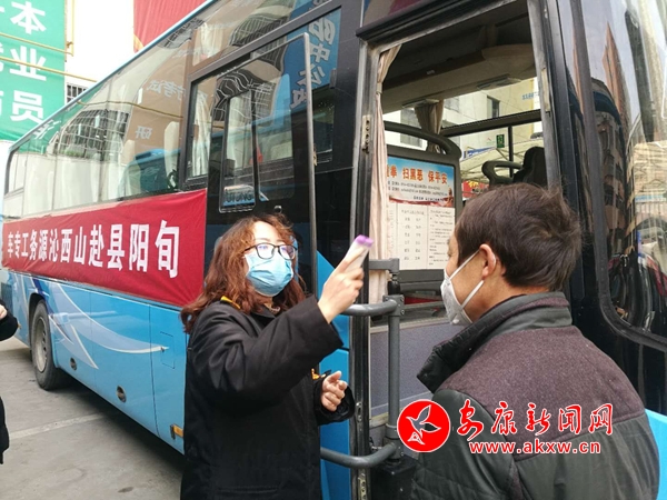 今日上午,旬阳县汽车运输公司里8辆“务工大巴”整装待发,车上载着的是来自全县各镇126位前往浙江绍兴、山西沁源的务工人员,每辆“务工”专车上按照核定载客人数的50%载客。出发前工作人员对返岗人员进行严格疫情筛查比对和健康检查,并要求路途中全程量体温、佩戴口罩、按时消毒等疫情管控,确保用人单位和务工人员安心、放心。