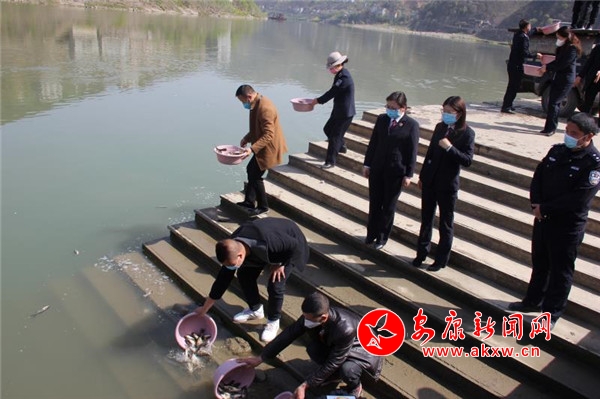 本网讯(通讯员 薛进涛)3月19日,旬阳县在汉江码头举行涉鱼案件生态修复增殖放流暨2020年禁渔宣传月启动仪式活动,安康铁路运输检察院、市农业执法支队、市渔业生产工作站、旬阳县农业农村局、旬阳县公安局等单位干部职工共40余人参加活动。