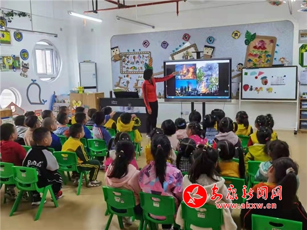 在周一升旗例会上,围绕“消防记心中,安全伴一生”为主题晨会,值班老师以发生在身边的鲜活事例,为全体师幼进行消防安全知识宣传。中班小朋友们还表演了《好男儿当消防》等儿歌,激励小朋友们从小立志当消防员,为国家做贡献。