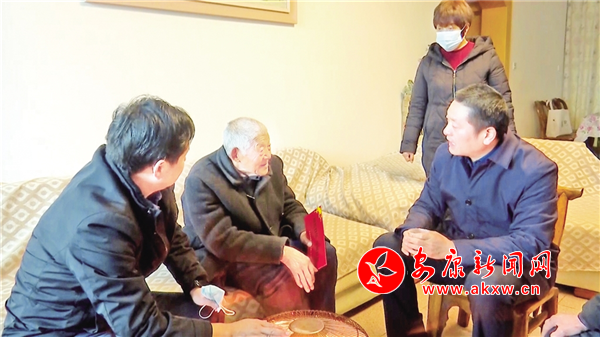 旬阳市委书记陈红星(右一)看望慰问抗美援朝老战士王明玉