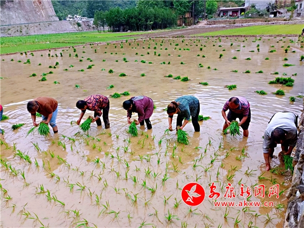 这个时节,在蓝天白云的映衬下,龙王滩村一块块亮汪汪的水田充满着诗情画意。龙王滩村有着悠久的水稻种植历史,今年,龙王滩村以“村集体经济+企业+农户”的模式,发展200多亩连片水稻。田埂上、河坎边、秧田里,三三两两的插秧人正在劳作,左三棵,右三棵,分蔸均匀,秧苗直立,排列整齐,横竖都在一条线上。不一会儿,青苗点缀的水田平整如镜。“龙王滩村通过引进高品质水稻品种,发动村民进行集中种植,在抓好粮食生产的同时,也带动当地乡村旅游,促进乡村产业高质量发展,助推乡村振兴。”龙王滩村支部书记宁波说。