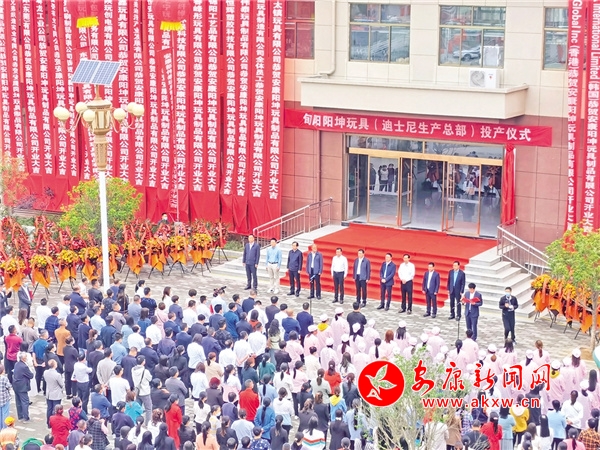 2022年5月10日,旬阳阳坤玩具(迪士尼玩具生产总部)投产仪式在蜀河新区举行,项目年产1000万件,于今年2月10日签订招商协议,仅用90天时间就完成了厂房装修、设备安装、员工招聘等工作。