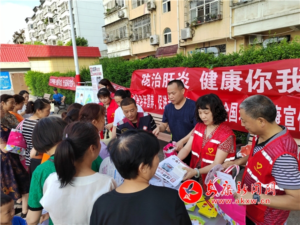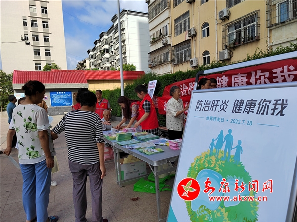 本网讯(通讯员 陈子贤)2022年7月28日是第12个世界肝炎日,为进一步普及各种肝炎的防治知识,提升社区居民防治意识,增强自我保护能力。7月28日早上,旬阳市城关中心卫生院联合市疾控中心、市健康教育中心走进康花园小区广场,开展“防治肝炎,健康你我”主题宣传活动。
