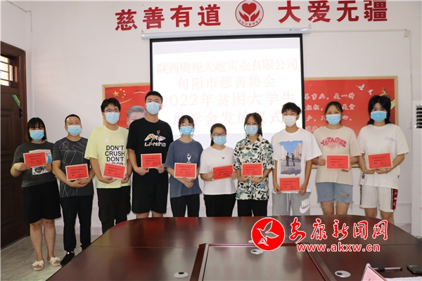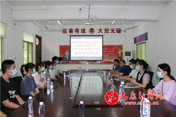 本网讯(通讯员 龚成丽)8月24日,陕西翱翔天越实业有限公司联合旬阳市慈善协会举行了2022年贫困大学生助学金发放仪式。现场为13名品学兼优、家庭困难的学生每人发放助学金4000元。