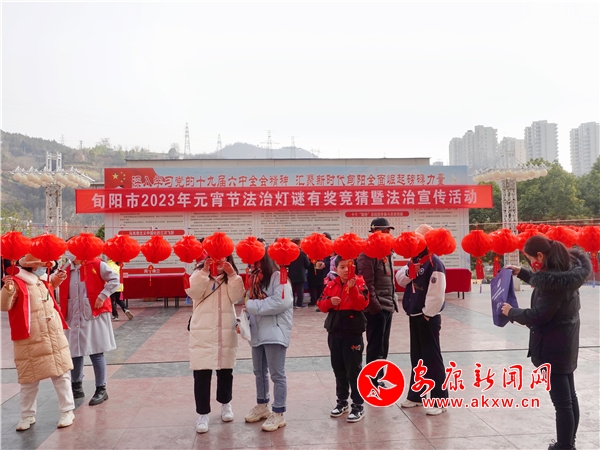 正月十三,旬阳市祝尔慷广场,人潮涌动,热闹非凡。走近一看,原来是旬阳市正在举办2023年元宵节法治猜灯谜暨普法宣传活动。大红灯笼高高挂,法治谜语迎风飘。活动现场,红红火火、喜气洋洋,引得过往群众驻足观看、争相竞猜。