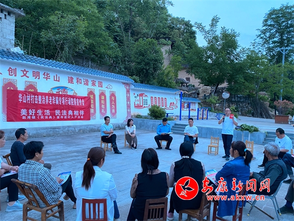赵湾镇华山村召开院落群众会,宣讲民法典。