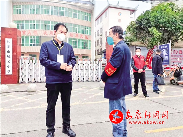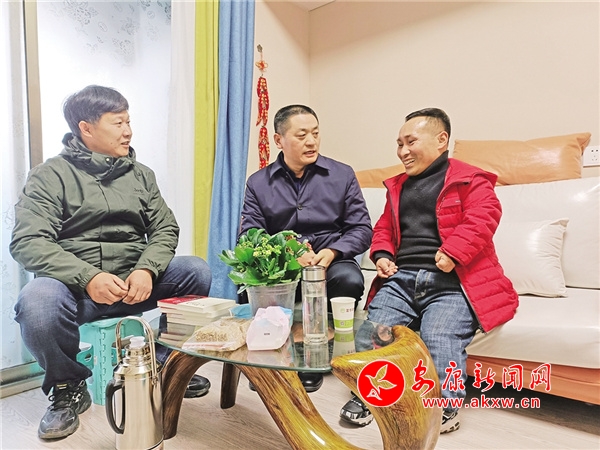 旬阳市委副书记、市长罗本军(左)疫情防控期间深入社区了解对残障人群的物资保障及关爱服务情况
