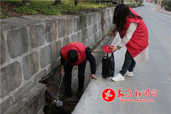 阳春三月,微风不燥,太极城森林公园里的桃花灼灼开满园,引得不少市民前来打卡的。不远处,一群“志愿红”三三两两结伴而行,不时穿梭在公园的林间小路和灌木草丛中。只见他们一手提着垃圾袋一手捏着垃圾夹,佝偻着腰仔细搜寻着纸张、烟头、塑料袋等,这些看似不起眼的小东西,却直接影响着公园的卫生和美观。大家也不嫌脏,有的干脆直接跳进路边的排水渠清理垃圾。在经过一番环境整治后,林间小道、草坪深处已不见塑料袋、果皮纸屑的踪影,公园的地面也变得更加干净整洁。