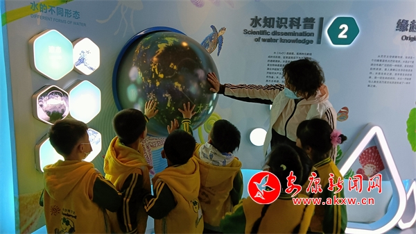 小朋友们走进水文化馆,立即被神奇的“生命之源”所吸引,精致的浮雕、科技感浓重的电子屏幕等展项都牢牢让小朋友们注目观看。通过观看水文化科普系列动漫宣传视频,使小朋友们近距离体验到水文化的魅力和水利科技科普。解说员积极和小朋友互动,通过现场问答、操作互动电子屏等多种方式,让孩子及家长们了解了我国的水历史、水状况等内容,更加清楚地了解关于汉江和旬河的知识。同时引导小朋友们树立从小“爱水、惜水、节水”意识,倡导规范用水、合理用水,用实际行动让节约用水成为一种新时尚。