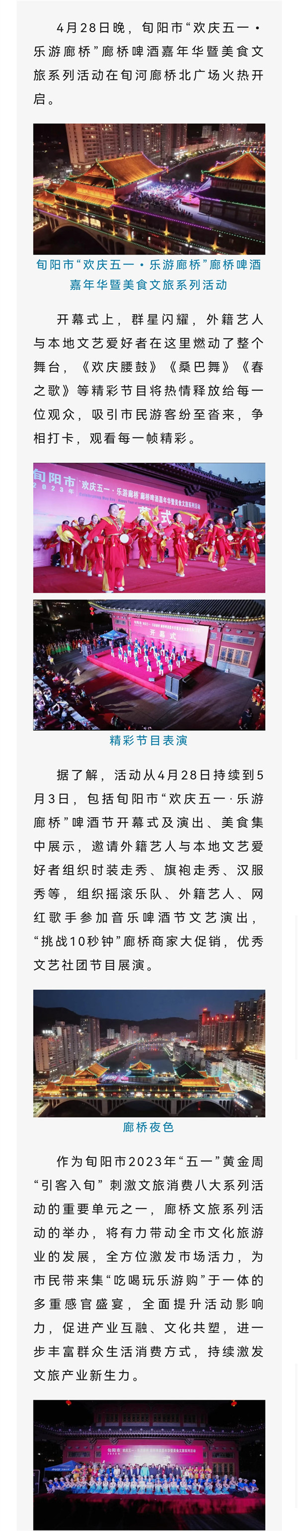 旬阳市“欢庆五一·乐游廊桥”廊桥啤酒嘉年华暨美食文旅系列活动火热开启