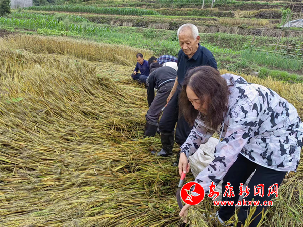 “大家再加把劲儿,这一块马上要收割完了,完了我们转战老李家。”在黑沟村二组石槽沟梁利鹏的麦田里,镇村党员干部、左邻右舍与“时间”赛跑,割麦、捆扎、搬运……大家分工协作,动作娴熟利索、挥汗如雨,不一会儿,五亩小麦全部收割完成。