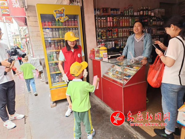 本网讯(通讯员 吴娟)6月19日,旬阳市第一幼儿园党支部开展“文明创建 你我先行”省级文明城市创建志愿服务活动,旬阳市鲁家台社区的菜市场店铺门前小朋友们正在争当创文宣讲员。