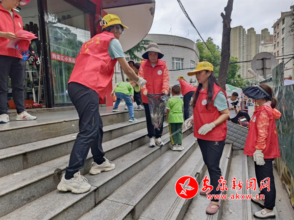 当日,全体党员、积极分子和幼儿代表身着红马甲走进社区开展创文宣讲和环境卫生整治工作。党员志愿者沿路捡拾垃圾并向市民播放《创文倡议书》,劝导街边店铺经营者要积极配合创建行动做好门前“四包”,幼儿手持创文宣传牌主动向居民发放《创文宣传单》,担当小记者采访路人,帮助他们知晓文明城市创建的要求和义务。