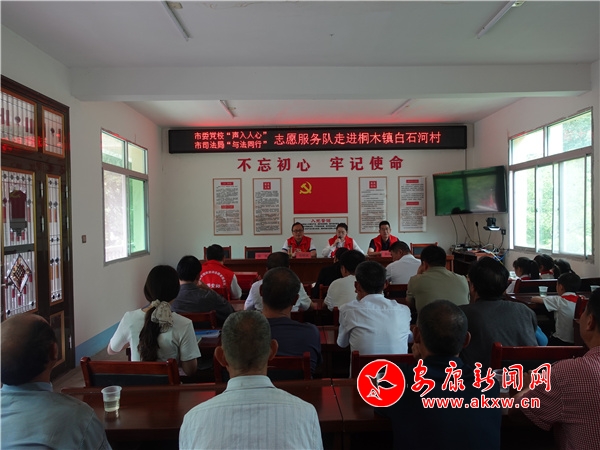 本网讯(通讯员 李丹)近日,旬阳市司法局“与法同行”和市委党校“声入人心”志愿服务队走进桐木镇白石河村,白石河村全体党员、群众代表、学生50余人参加活动。