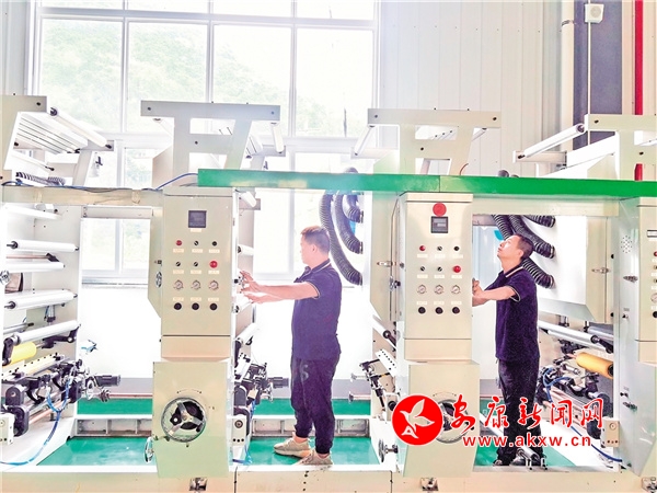6月27日,在旬阳市生物基可降解材料产业园,技术人员在安装调试水墨印刷机。邹一铭 摄