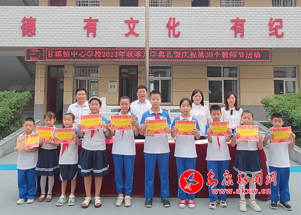 9月8日,旬阳市甘溪镇中心学校秋季开学典礼暨教师节庆祝活动举行。升旗仪式结束后,学校现场表彰了13名优秀教师和 130 名优秀学生,向全体老师送上节日的祝福,勉励全体师生在新学年百尺竿头更进一步。(通讯员 谢洪波 张策)xcS安康新闻网