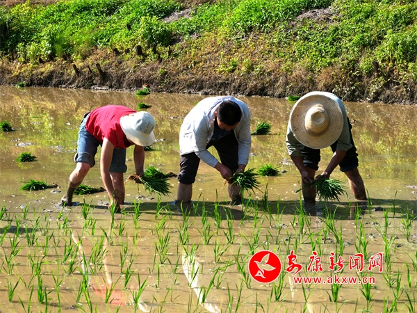 在王家坪、楼房村随处可见稻田里村民们犁田翻耕、分秧、运秧、插秧忙农耕的身影。