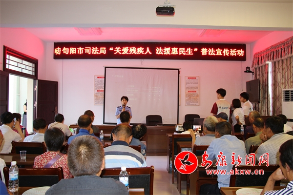 8月13日早上,在旬阳市甘溪镇甘溪社区活动室里,旬阳市司法局、市妇联、市残联工作人员以“唠家常”的方式你一言我一语地向台下的群众宣讲着惠残政策、助残法律法规等知识。不同以往,本次宣讲借助市残联举办的残疾人技能培训契机,专门针对残疾人朋友送上了“法治大餐”。