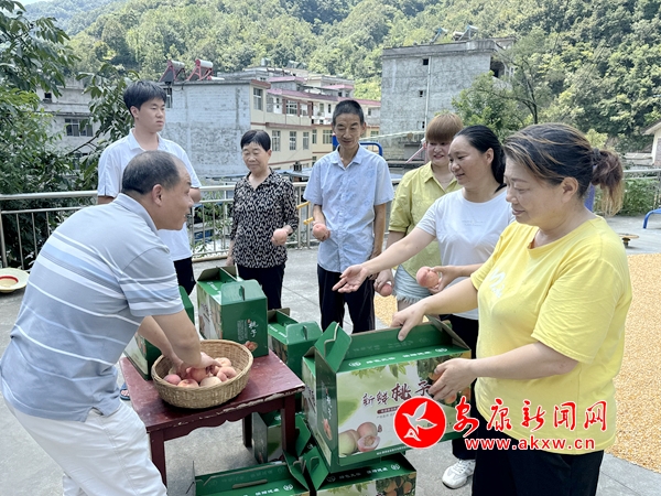 7月20日,旬阳市棕溪镇,一场由旬阳市委组织部派驻隆家河社区第一书记吴必新发起的“鲜桃销售行动”正在如火如荼地进行。隆家河社区的150亩果园正值水蜜桃、黄桃的丰收季,满园的桃子个大味美、粉嫩诱人,但在连绵的阴雨天气下,采摘和销售遇到了难题,园区负责人刘全洲愁眉不展。