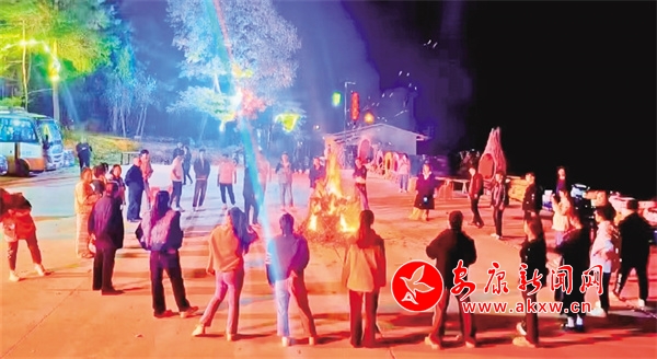夜幕降临,篝火熊熊燃起,当动感的音乐响起,游客们手拉手围成圈,绕着篝火载歌载舞,感受着热烈的秋日浪漫,这一场景也成为此次活动的一大亮点。