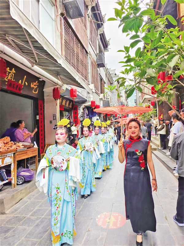 “过去总说‘捧着金饭碗要饭’,现在我们让老手艺成了新饭碗。”古镇“裕庆和”店面里,负责人李俊沏上一壶富硒茶,忍不住发出感叹。这位扎根故乡创业传承非遗的“领头雁”,将祖传的八大件宴席打造成亮眼名片。他开发的“古镇两日游”线路,将美食体验与民宿客栈、茶社书院有机结合,年接待游客上万人次。