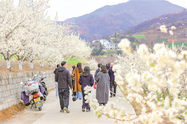 春日的旬阳市段家河镇,樱桃花海随风翻涌,白墙黛瓦的民居错落有致,石板路蜿蜒穿村而过。果农们忙着修枝疏蕾,游客们驻足拍照打卡,一幅“产业兴、乡村美、百姓……