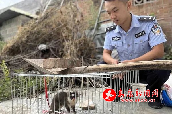 安康旬阳:贪吃鼬獾误入农户 民警助其回归自然