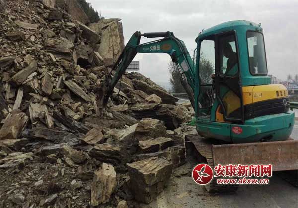 安康新闻网讯 (通讯员 葛松 张欢) 10月29日上午,瀛湖干道K1+050处,一台挖掘机一台装载机正在紧张清除道路塌方。