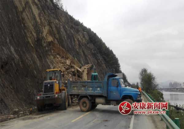 瀛湖干道边坡滑塌 汉滨公路段紧急抢险