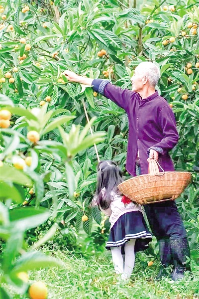 几十年前,朱平凤老教授倾尽毕生心血与积蓄,让这片昔日的荒山坡变成了清香四溢的花果山。如今,这一座座山变成了“金山”,她留下的枇杷也在2019年12月获得国家地理标志认证,目前全镇11个行政村2000余户群众从事枇杷种植,种植面积近1万余亩,其中高效果园3500亩,品种多为大五星、解放钟、长虹等,全镇形成了“户成林、村连片、枇杷满山野”的种植格局。据统计,2022年枇杷产量达到了450余吨,销售额达1800万元左右,户均增收2万余元。