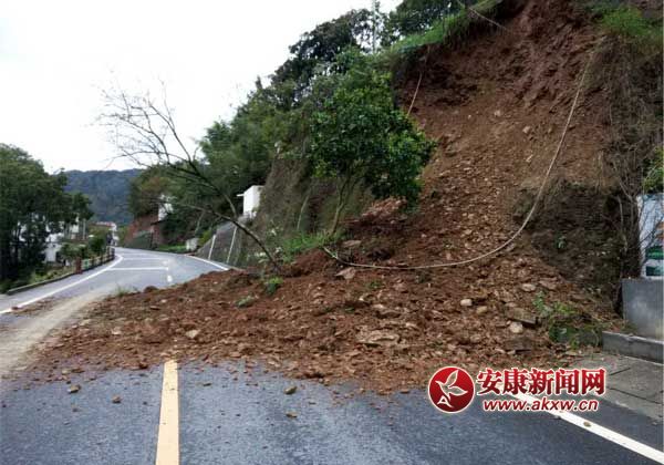 瀛湖干道边坡滑塌 汉滨公路段紧急抢险