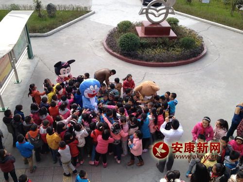 安康新网讯 (通讯员 白娜娜)初冬的太阳暖暖的照着洪石小学,今天的校园可与平时的校园不一样,因为今天来了几位神秘的客人。看!机器猫、米老鼠、泰迪熊向同学们走来了,同学们开始欢呼雀跃了。很快大家把平时只有在电视、电脑上才能见到的卡通人物围起来了,高兴地同客人打招呼、问好。就在同学们还在新奇不已的时候,机器猫、泰迪熊、米老鼠从它们的肚子里“变出”许多各种各样的零食,它们一边给孩子分发零食,一边同孩子们热情拥抱,每一位同学的脸上洋溢着幸福、欢乐的微笑。分发完零食后,张校长向大家做了介绍,原来是赛格集团的爱心人士代表来看望同学们了。在县教体局徐局长的陪同下,它们装载着满满的爱心来到洪石小学,与同学们亲切交流,并且对洪石小学的10名贫困学生给予每人1800元的教育资助。受资助学生的家长满怀感激之情,接过这爱心捐款,并纷纷表示一定将爱心捐款用在孩子的生活和学习上。