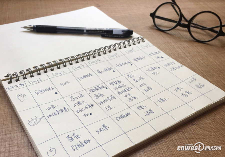 OO有一个专门记录早餐的小本子,会提前把一周的食谱写出来。