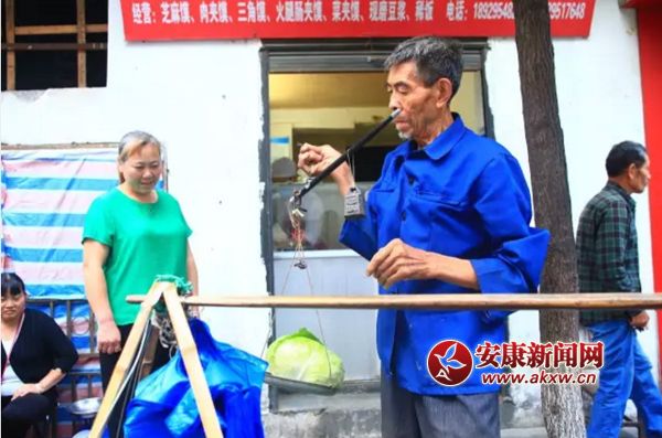 从家到县城约两里路,老人不紧不慢的走着。到达县城时,县城周边卖菜的群众或推着手推车,或骑着三轮车纷纷赶往菜市场。老人担着两竹筐菜走在街头,不时有人前来挑挑拣拣、讨价还价。