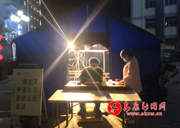 疫情防控践初心,坚决把好预检分诊发现关。快速启动了预检分诊工作,将预检分诊前移至门诊楼前,设置本地患者和湖北及外地发热患者就诊“两通道”,24小时规范分诊,设立发热患者就诊、检查专用通道,确定专人定时定点定量消杀防疫。精准筛查发热患者;对所有进入院区人员做好“一测二问三登记四分流五处置”工作。该院全体医务人员主动放弃与家人团聚机会,坚守防控一线,践行着医务工作者“敬佑生命、救死扶伤、甘于奉献、大爱无疆”的初心和使命。