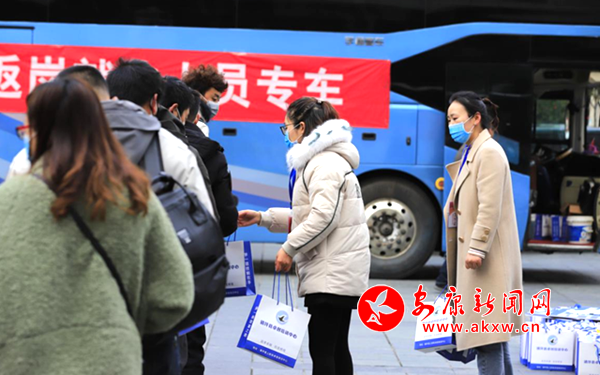 为保障返岗人员的安全健康,工作人员对专车内外进行了反复消毒,运输车辆满载率不超过50%,实施乘客隔位、分散就坐,在每辆车中选取一名车队长,委托人力资源服务公司跟车全程护航,贴心服务。还为每名司乘人员准备了装有口罩、饼干、矿泉水等物资的“爱心包”。