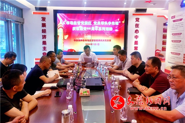 本网讯(通讯员 欧佩)7月1日,镇坪县市场监督管理局机关党支部组织开展“市场监管党旗红 党员带头争先锋”庆祝建党99周年系列活动。通过集中学习习近平总书记来陕考察重要讲话重要指示精神、观看微视频《从红船到巨轮》、重温入党誓词、表彰10名疫情防控先进个人、支部书记讲党课、开展党建知识竞赛等多种形式,共同庆祝建党99周年。
