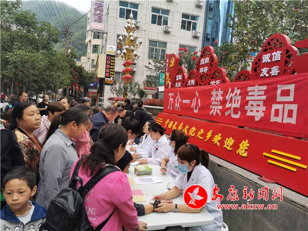 宣传主题有:万众一心、禁绝毒品;同心抗疫、护佑新生;健康要加油、饮食要减油等。活动现场摆放了“三减三健”、慢性病防控知识展板、悬挂宣传横幅,开设健康咨询、发放宣传资料及健康支持工具,向周围群众宣传全民健康生活方式核心信息。镇坪县医院设立义诊台,可以测量血压、提供疾病健康知识咨询,工作人员重点向市民讲解“减盐”办法,倡导饮食“就要5克”的减盐理念,传播低盐饮食知识,促进全社会共同关注并践行减盐行动,同时介绍了 “三减三健”相关内容与生活技巧,传递健康生活信息;积极倡导在常态化疫情防控下坚持“一米线”、勤洗手、戴口罩、公筷制等卫生习惯和生活方式。