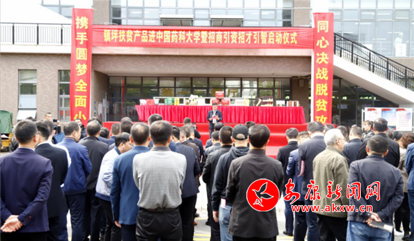 本网讯(通讯员 贺孝成 江涛)为进一步加强校地企交流合作,扎实推进消费扶贫,开放招商引资、企业协同共建、文旅融合发展,不断巩固深化苏陕协作成果,10月19日,镇坪扶贫产品进中国药科大学暨招商引资招才引智活动启动仪式在中国药科大学江宁校区举行。中国药科大学党委书记金能明,校党委常委、副校长袁浩,院系相关负责人和镇坪县委副书记、县长李平,镇坪县委常委、组织部长鲁延福,镇坪县委常委、副县长涂世昌,镇坪县副县长张杰出席活动,各镇、有关部门负责人,20家企业代表参加活动,中国药科大学党委常委、组织部部长陈永法主持活动。