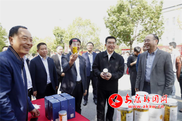 “我为扶贫产品代言”在展销会现场,县长李平一行拿起手里的菊花茶,当起了扶贫产品代言人,为药大师生介绍起了镇坪特色农产品:“我们镇坪产的金丝皇菊,具有“香、甜、润”三大特点,常饮能养肝明目、清热祛火、降脂降压、润肠排毒,是典型的长寿饮品。”
