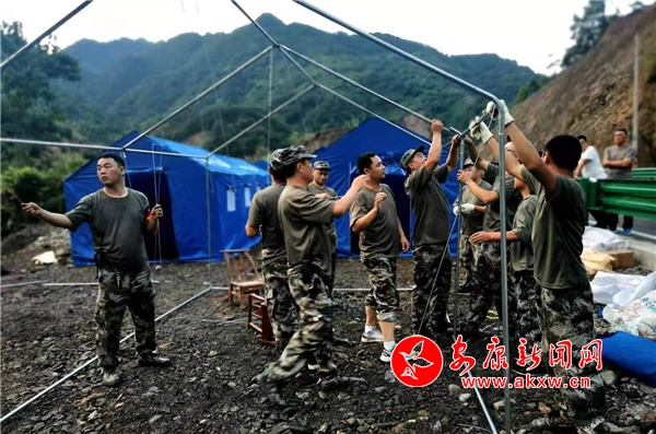 这支队伍到达现场后,立即组织转移受灾群众、转移物资、搭建帐篷......他们的到来极大地增强了受灾群众的信心,军民一心,团结抗灾,一场紧急而有序的抢险行动迅速展开。