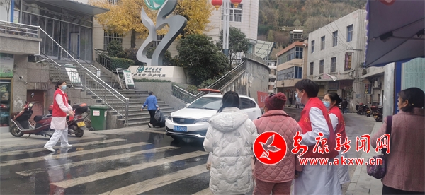 本网讯(通讯员 杜波儿)11月16日,镇坪县医院门口因修路造成交通拥堵,该院党委迅速反应,组织党员志愿者到医院门前和两个通道执勤,维护交通秩序,开展文明交通服务,并向行人讲解交通法规,告知文明出行规范。
