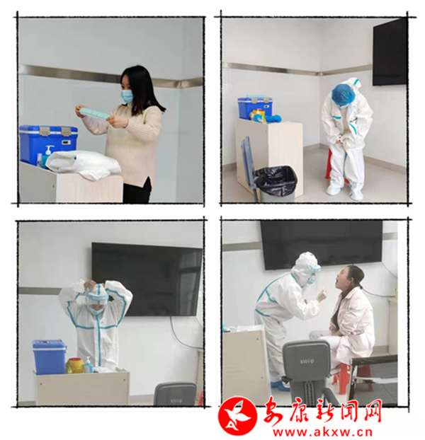培训中,培训老师以《新型冠状病毒核酸检测生物安全防护》为题进行讲解,围绕采样流程、标本种类、包装、运送等重点内容进行了详细讲解。各科室在现场还展示了穿脱隔离衣,解读病毒采样管的使用及咽拭子采集的方法和技术要点,让每一位同志都亲手操练,直至操作合格,考核才算过关。